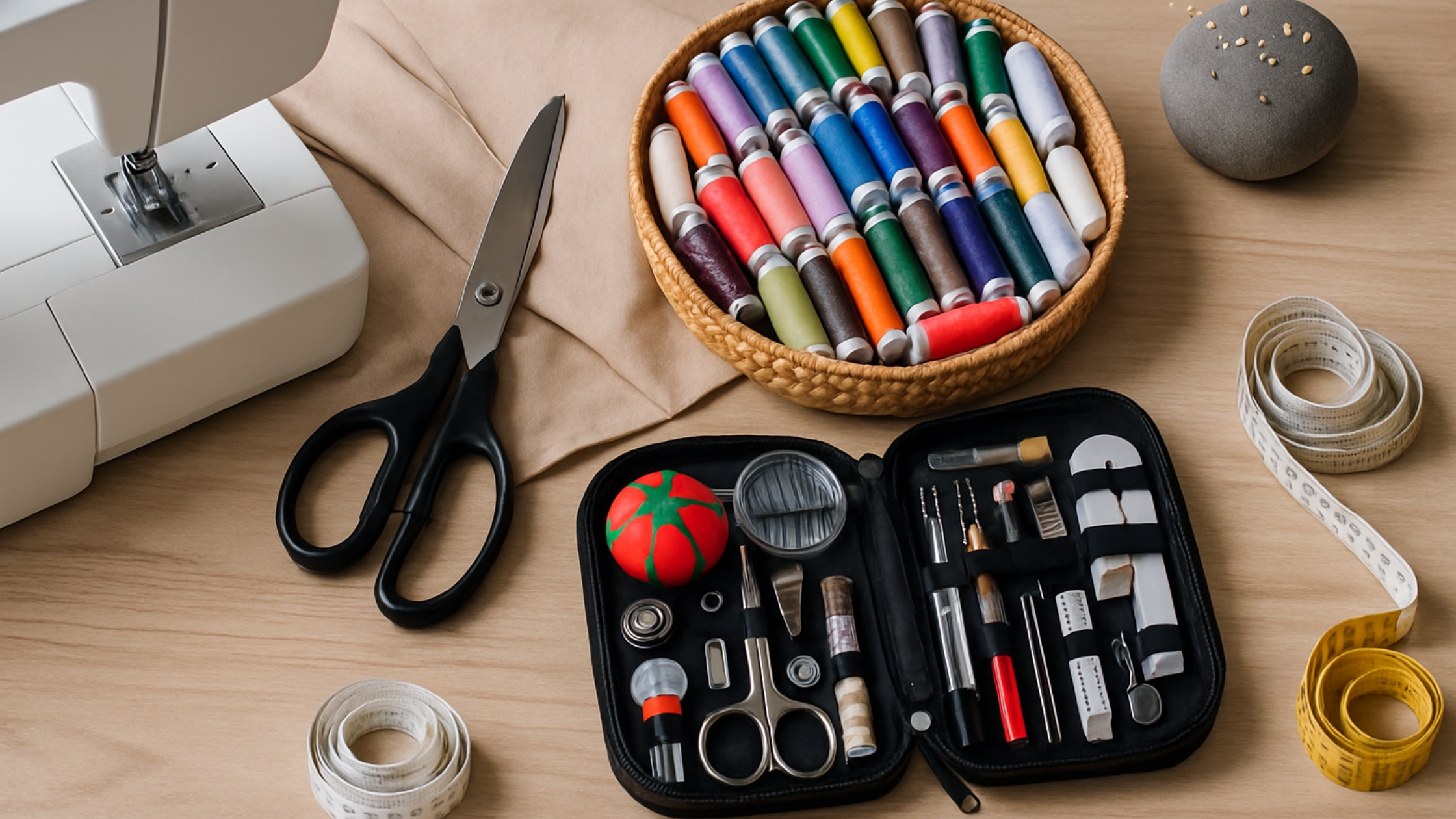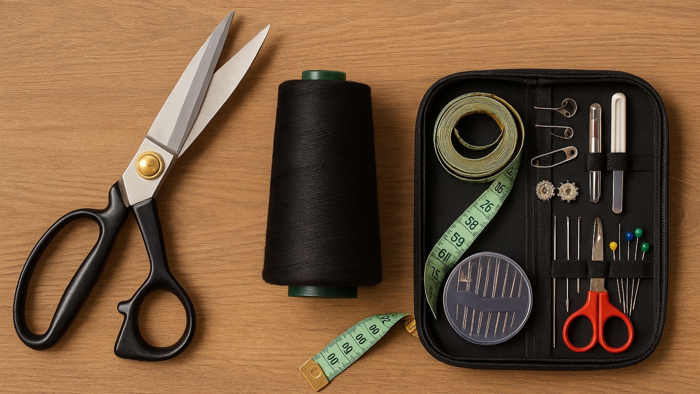 Um bom kit organizador reúne os principais itens de apoio em um só lugar: agulhas de diferentes tamanhos, alfinetes com cabeça colorida, dedal, passadores de linha, abridores de casa, botões reserva, carretéis extras e até pequenos acessórios como fita métrica, tesourinha de precisão e clips para tecido. Isso agiliza o trabalho e evita erros causados por improvisos.