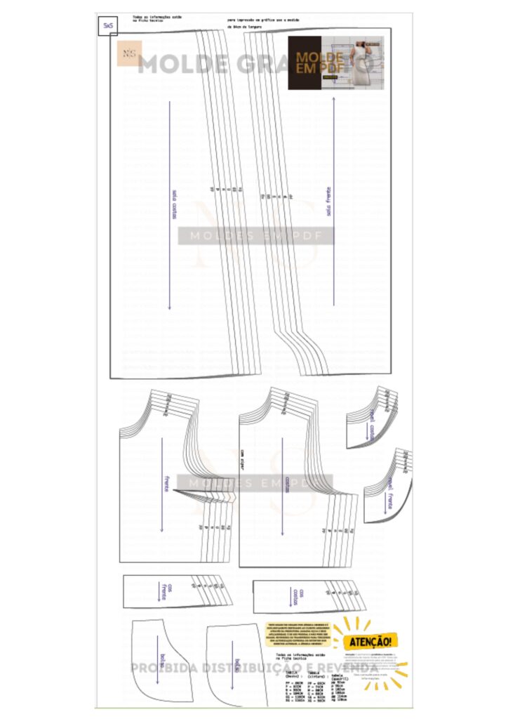 - Margem de Costura: O molde já inclui margem de costura de 1 cm. Adicione a margem necessária para a bainha conforme necessário.