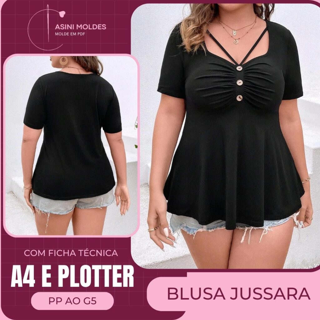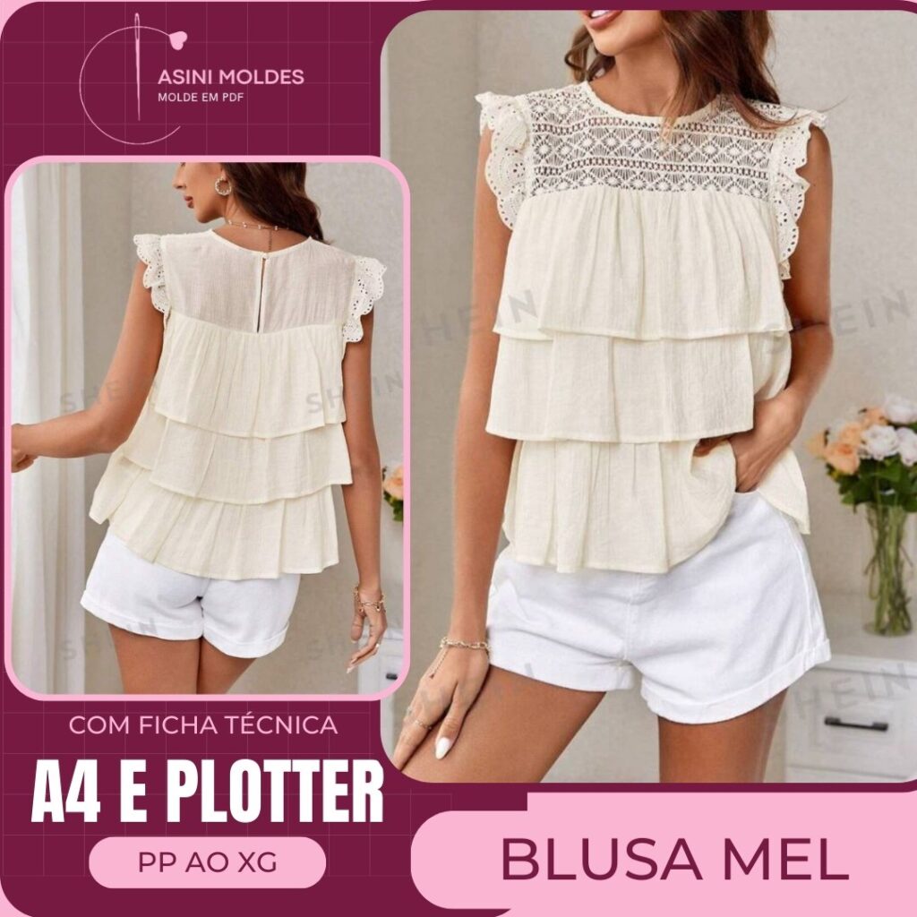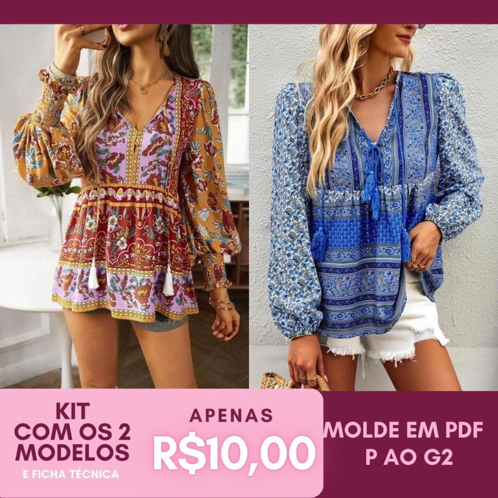 BLUSA MEIRE - Molde em PDF [MOLDES SEPARADOS POR TAMANHO] - COM TUTORIAL DE COSTURA