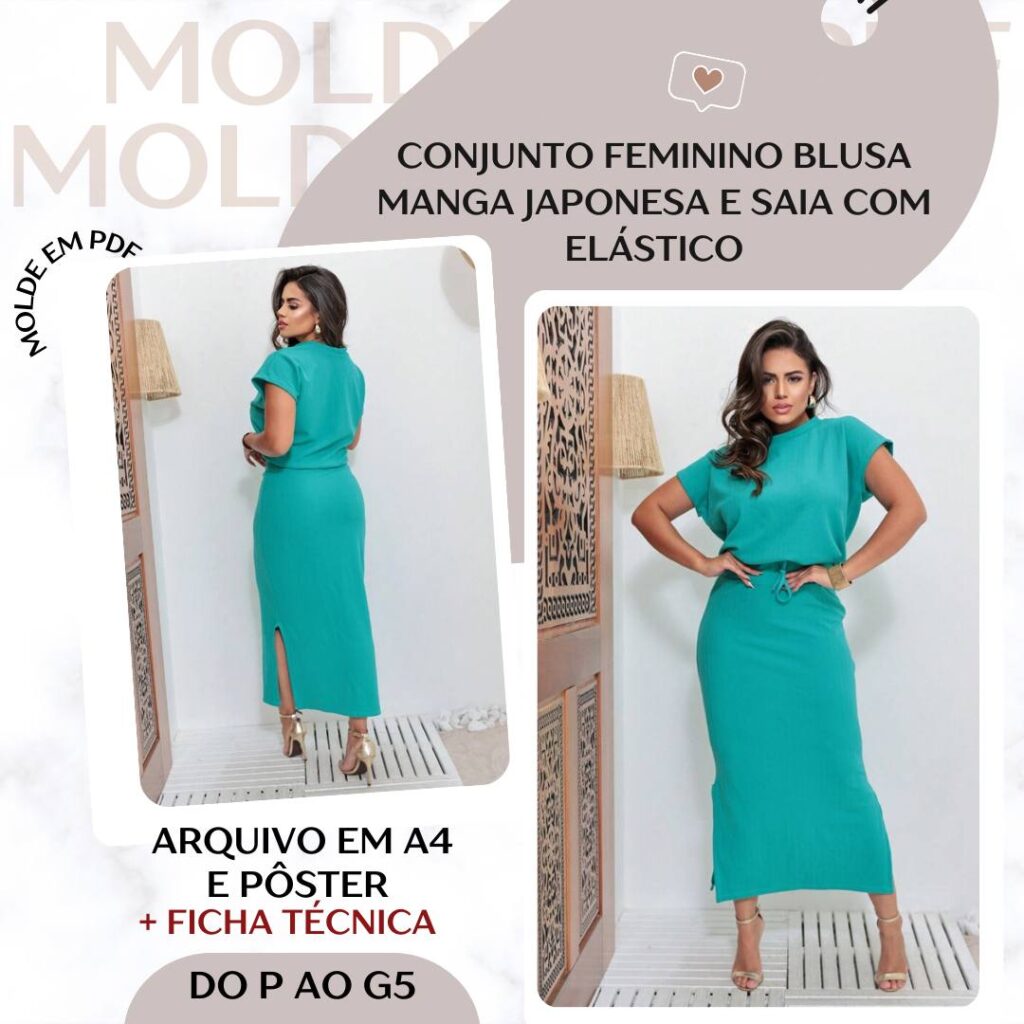 Conjunto Feminino | Blusa Manga Japonesa e Saia com Elástico - Molde em PDF [P ao G5]