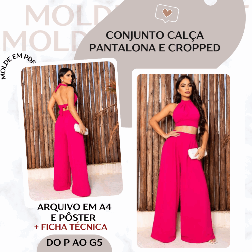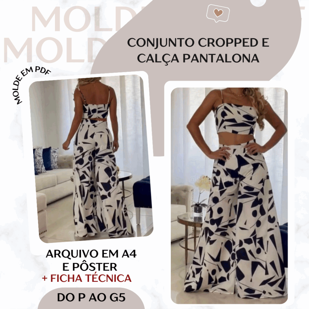 Conjunto Cropped e Calça Pantalona - Molde em PDF [P ao G5]