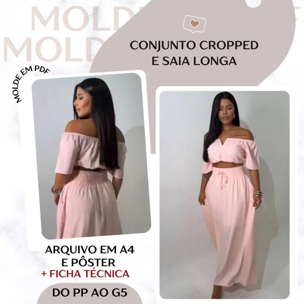 Conjunto Cropped e Saia Longa - Molde em PDF [PP ao G5]