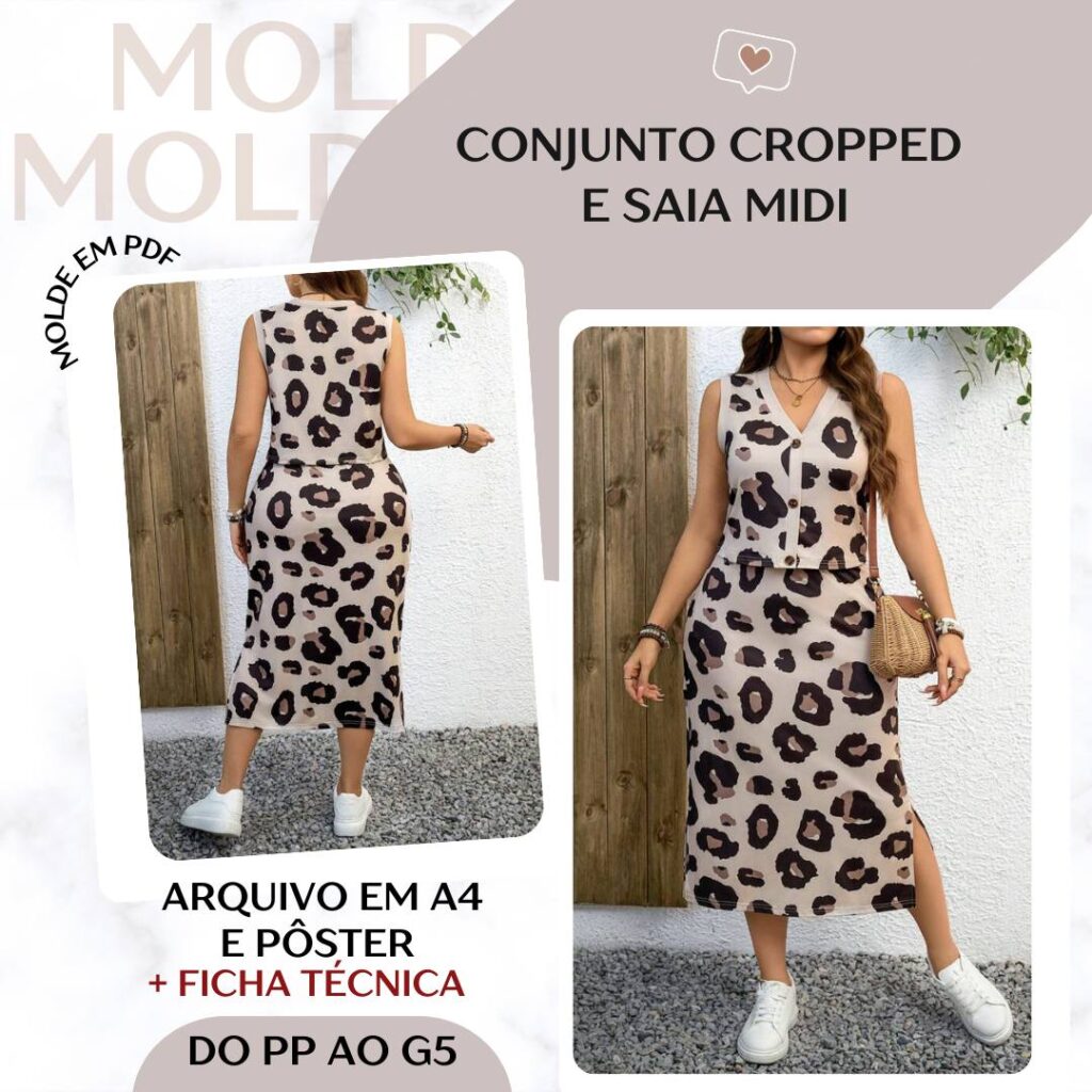 Conjunto Cropped e Saia Mid - Molde em PDF [PP ao G5]