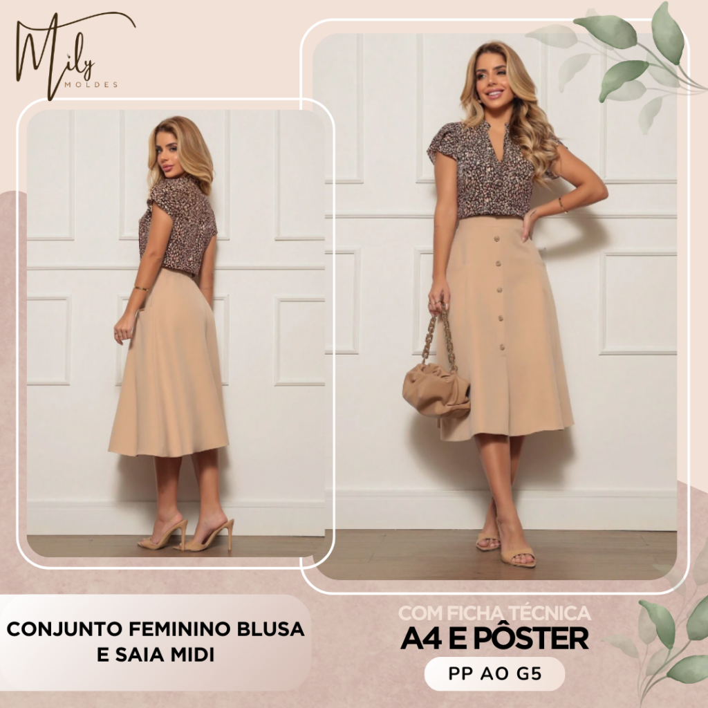 Conjunto Feminino Blusa e Saia Midi [PP ao G5]