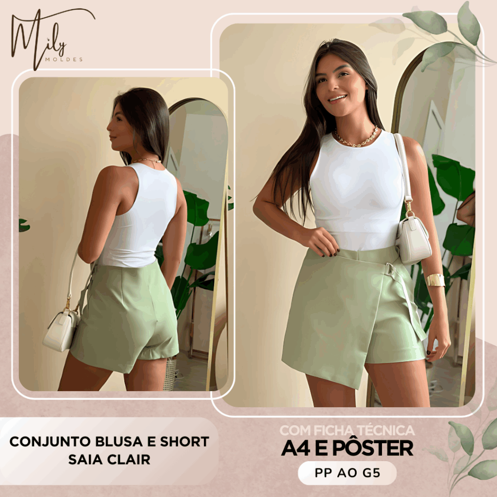 Conjunto Blusa e Short Saia Clair [PP ao G5]