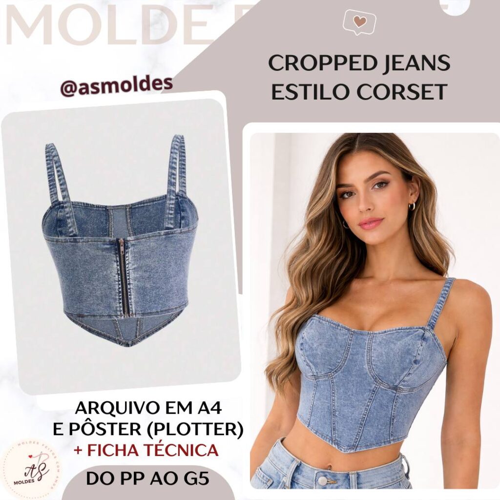 Cropped jeans estilo corset - Molde em PDF [PP ao G5]