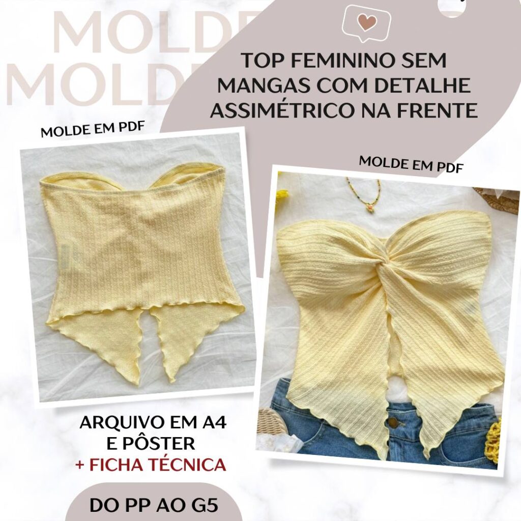 Top Feminino sem Mangas com Detalhe Assimétrico na Frente - Molde em PDF [PP ao G5]