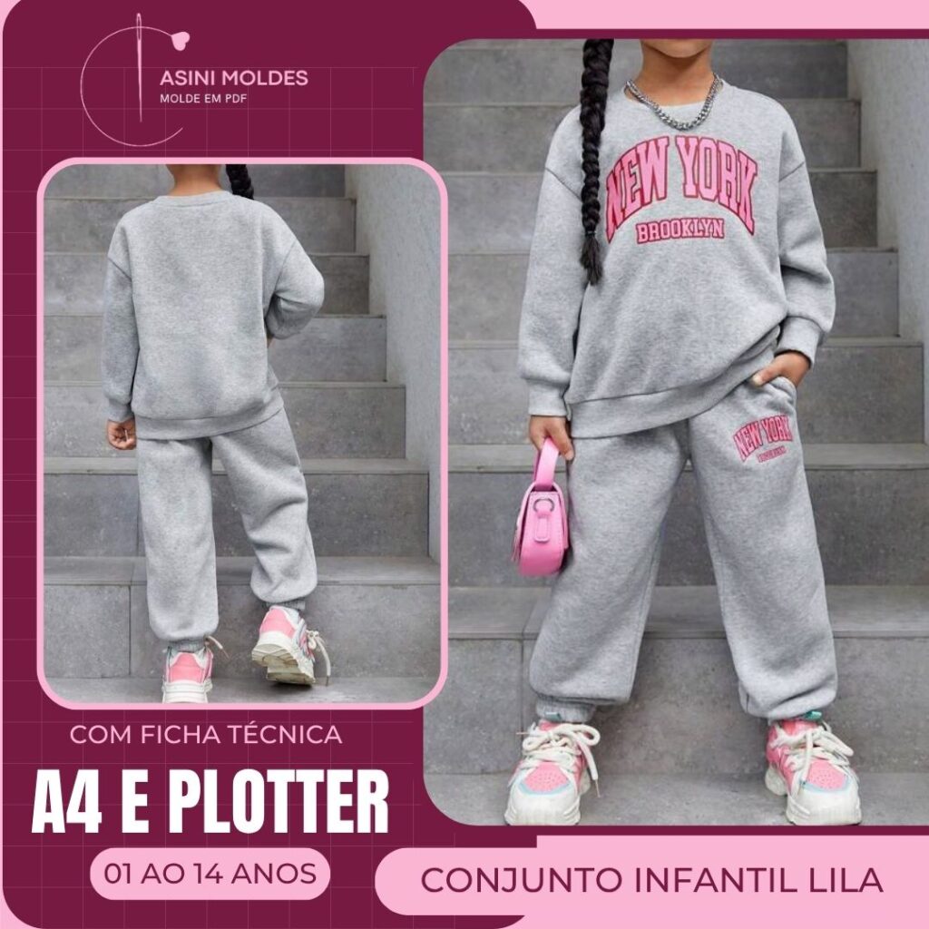 CONJUNTO MOLETOM INFANTIL LILA - Molde em PDF [2 ao 14 anos]
