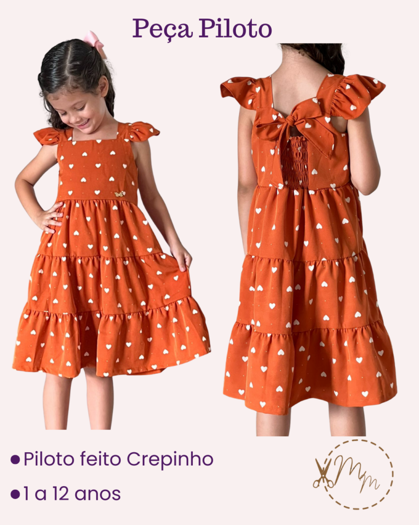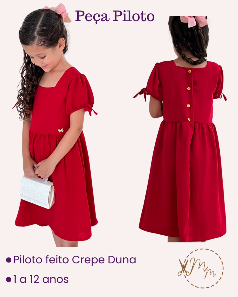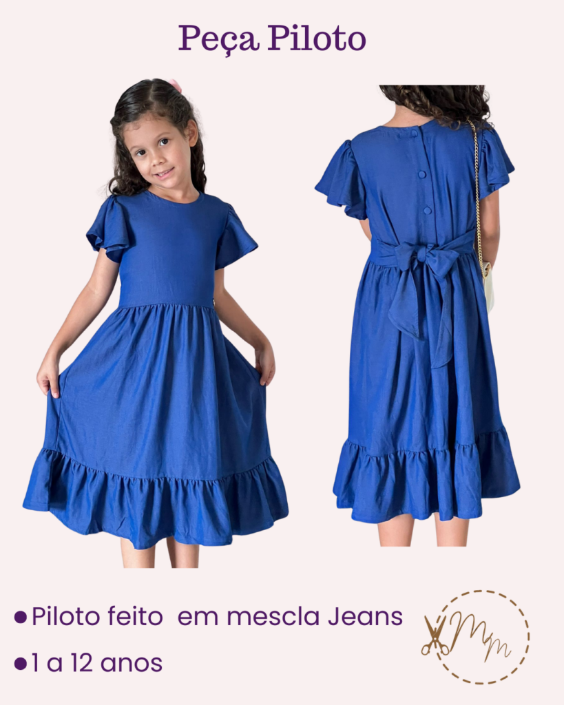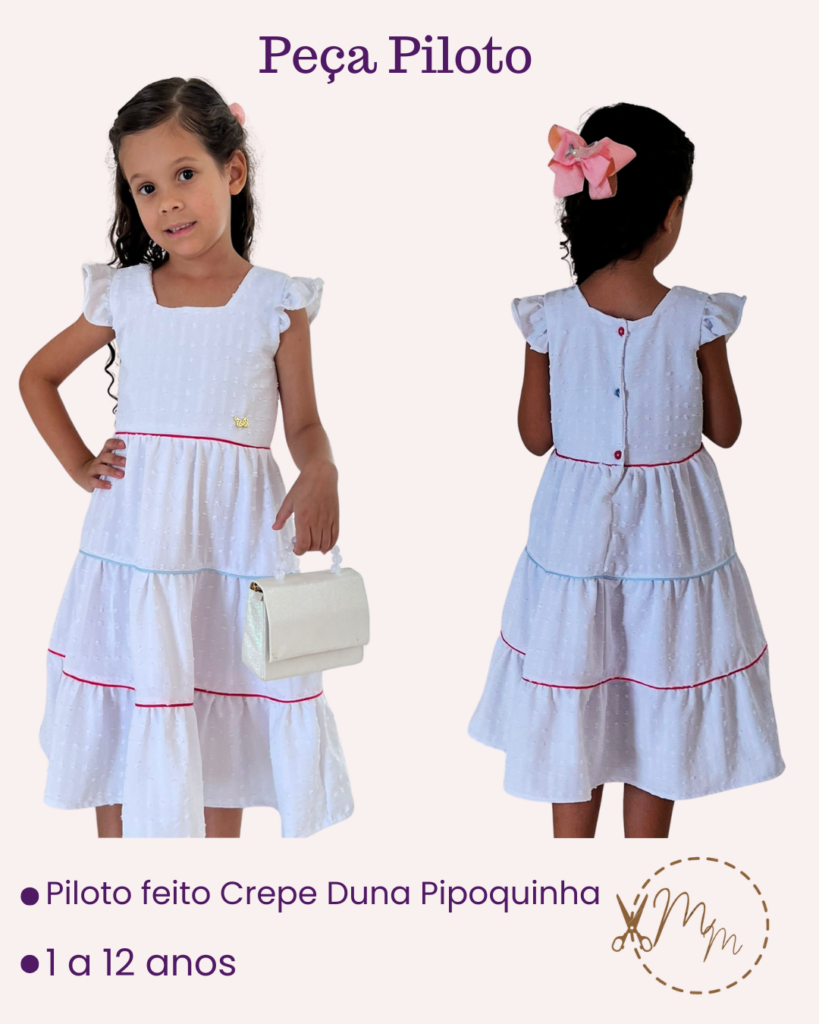 molde vestido infantil 3 marias com lastex nas costas [1 ao 12 anos]