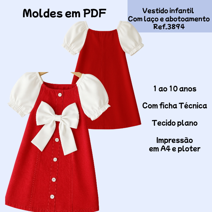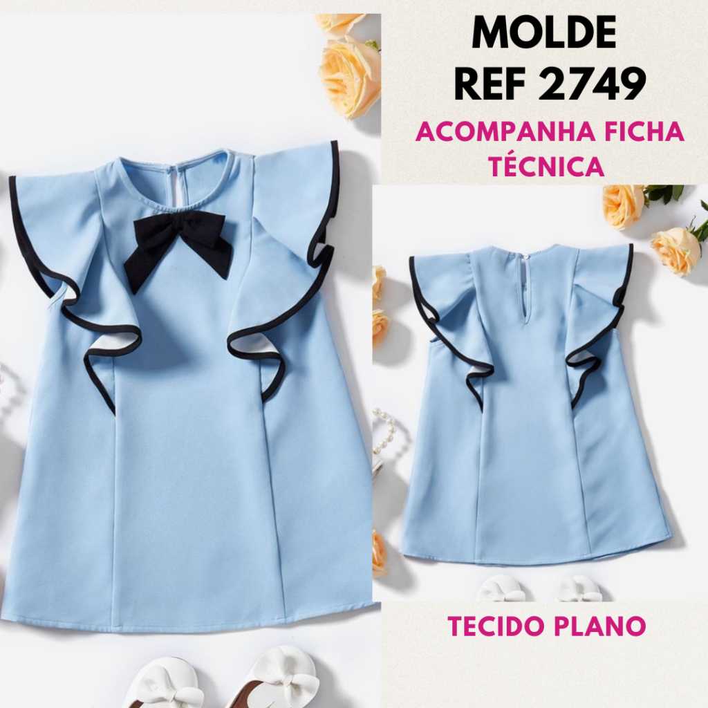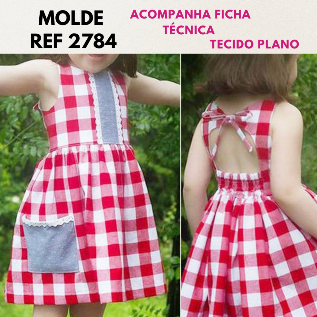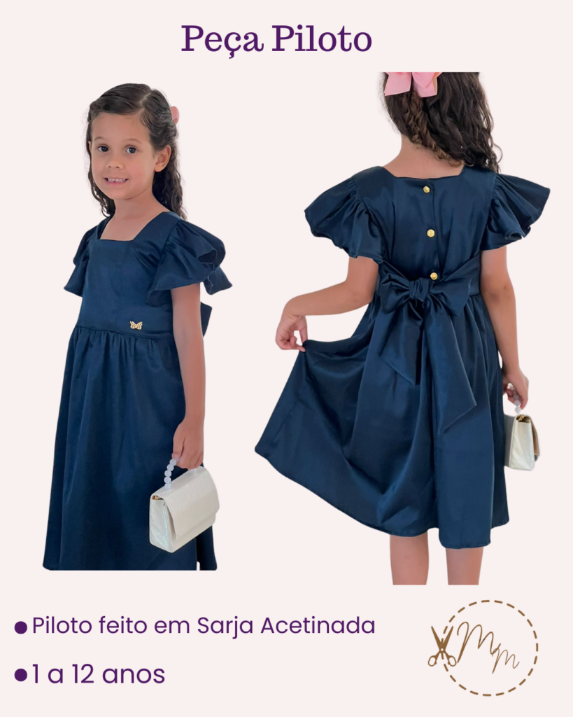 molde vestido infantil 3 marias com lastex nas costas [1 ao 12 anos]