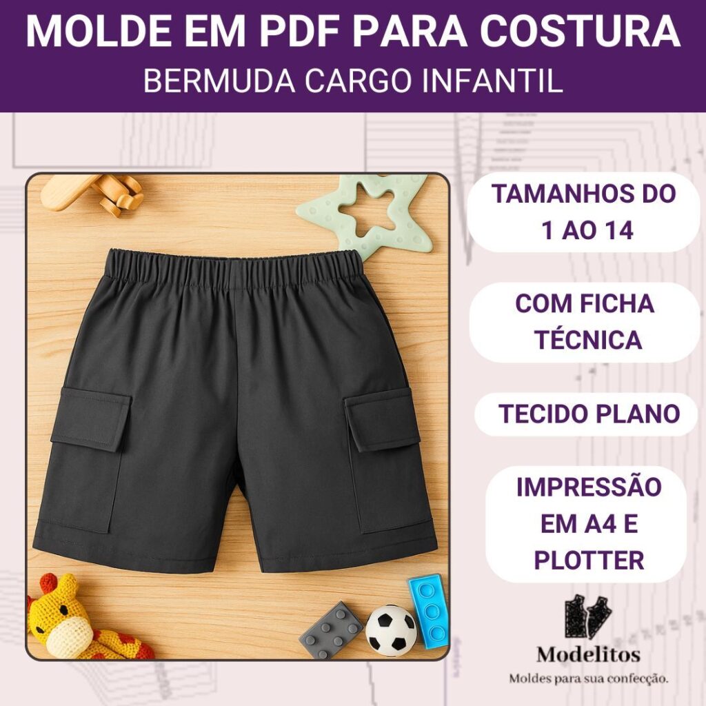 Molde em PDF Bermuda Cargo Infantil - 1 a 14 anos