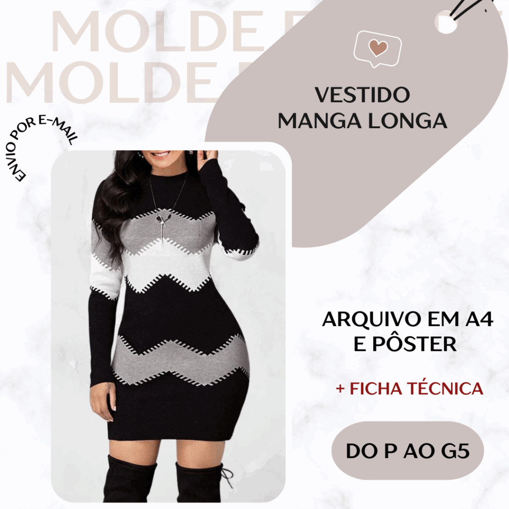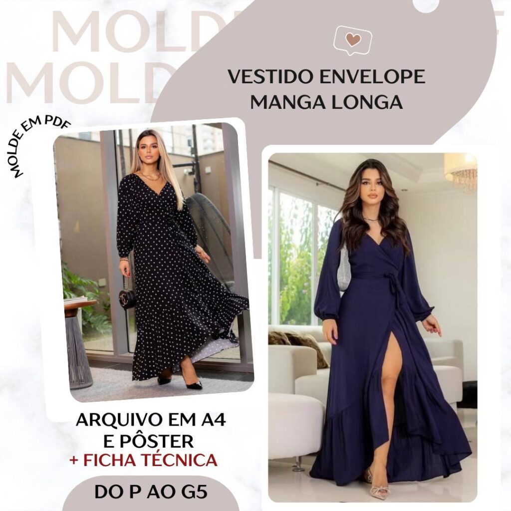 Molde em PDF - Vestido Envelope Manga Longa [P ao G5]