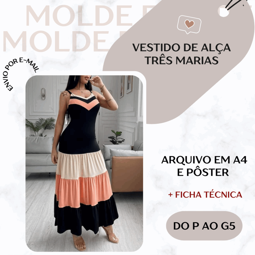 Vestido de Alça Três Marias - Molde em PDF [P ao G5]