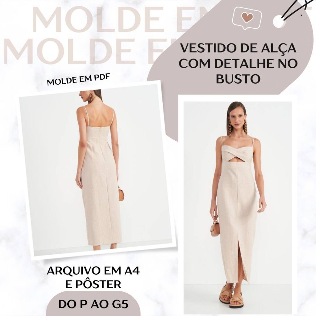Vestido de Alça com Detalhe no Busto - Molde em PDF [P ao G5]