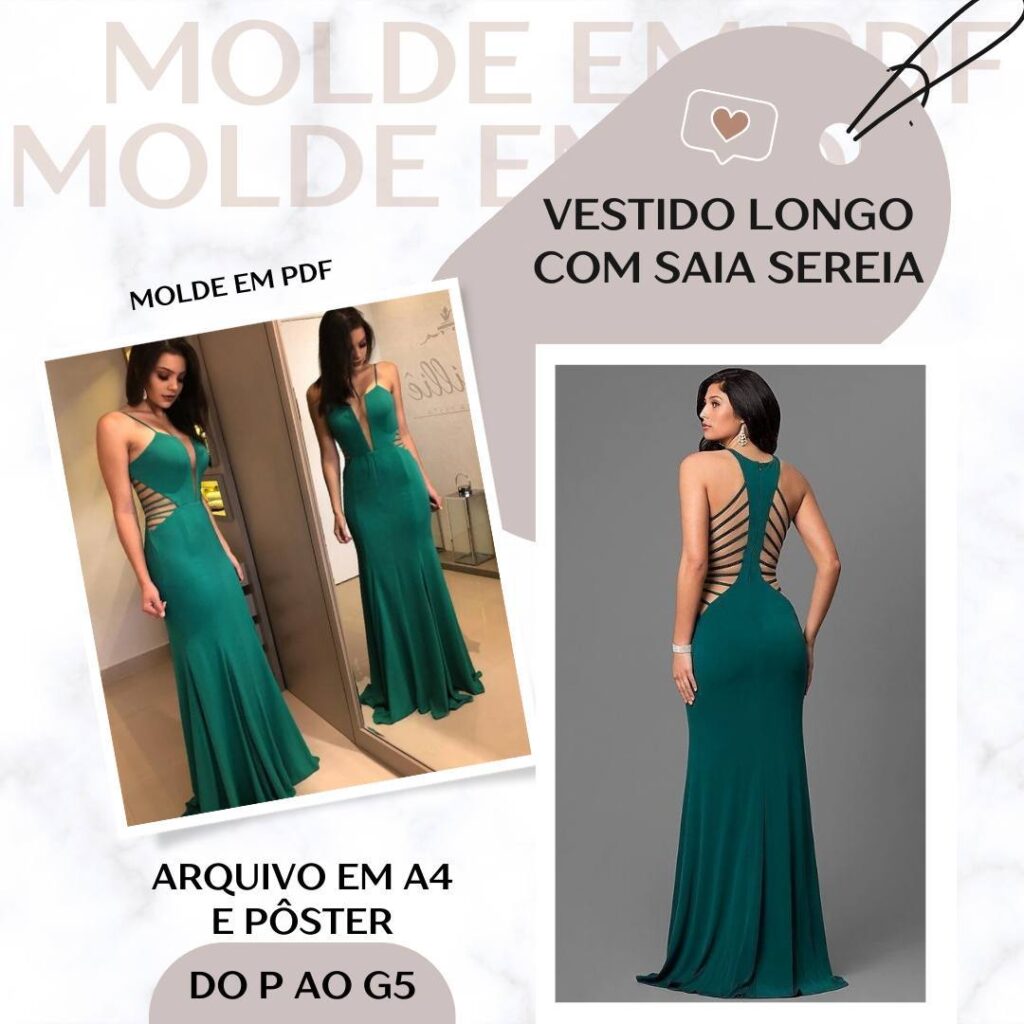 Molde em Pdf - Vestido Longo com Saia Sereia [P ao G5]