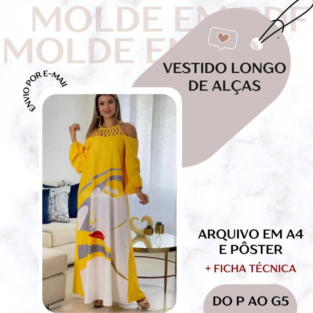 Molde em Pdf - Vestido Longo de Alças [P ao G5]