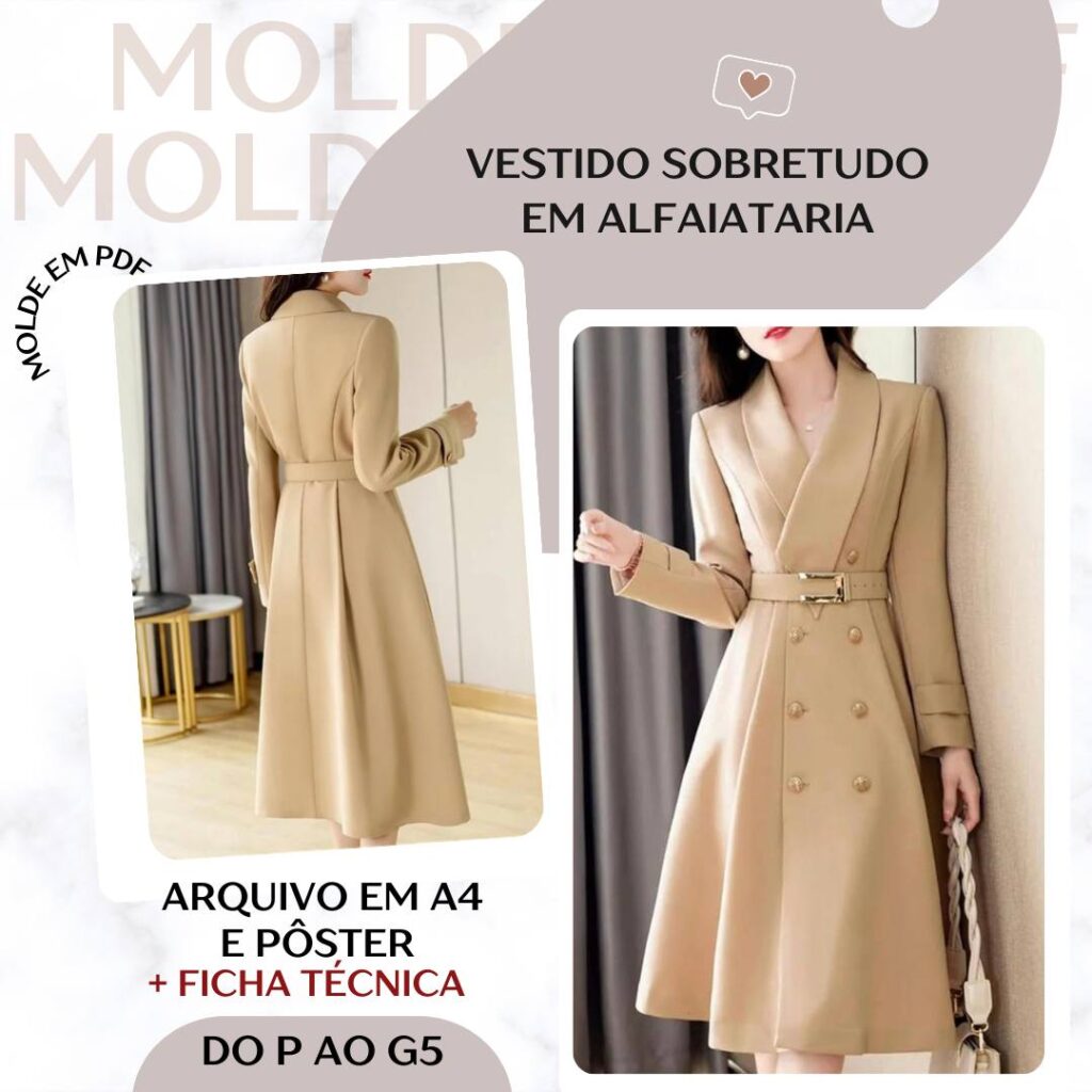 Molde em Pdf - Vestido Sobretudo em Alfaiataria [P ao G5]