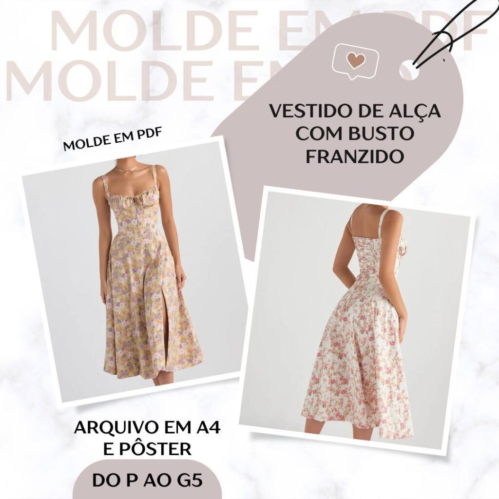 Molde em Pdf - Vestido de Alça com Busto Franzido [P ao G5]