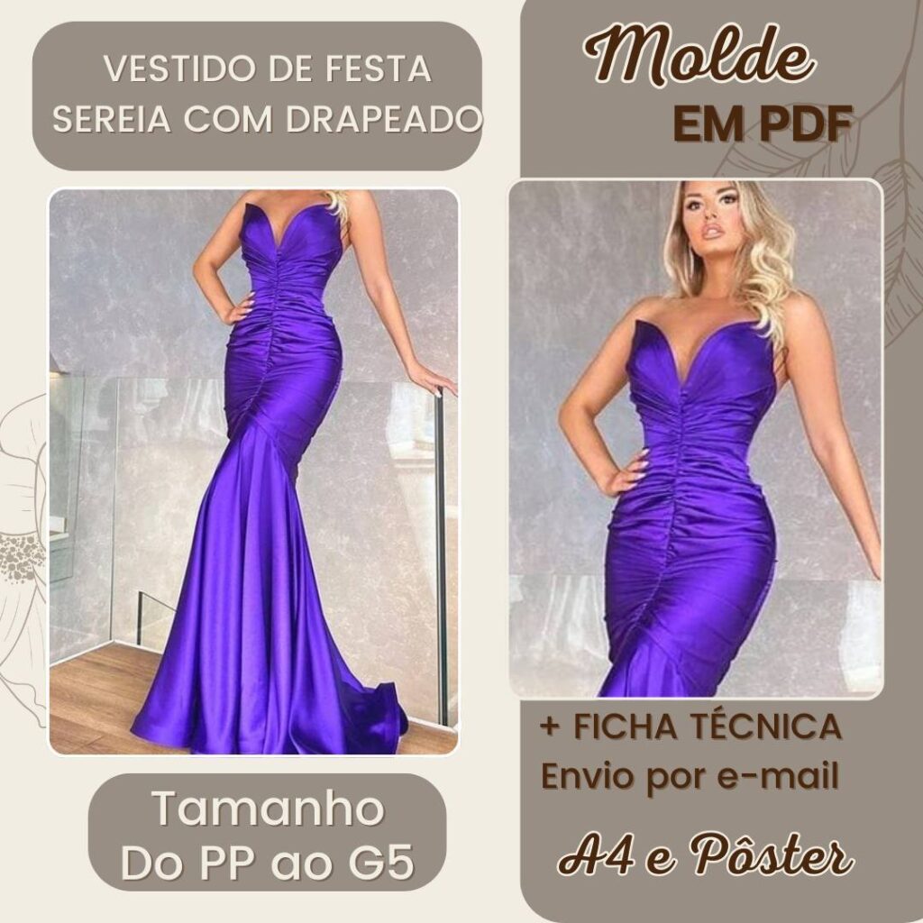 Molde em Pdf - Vestido de Festa Sereia com Drapeado [PP ao G5]