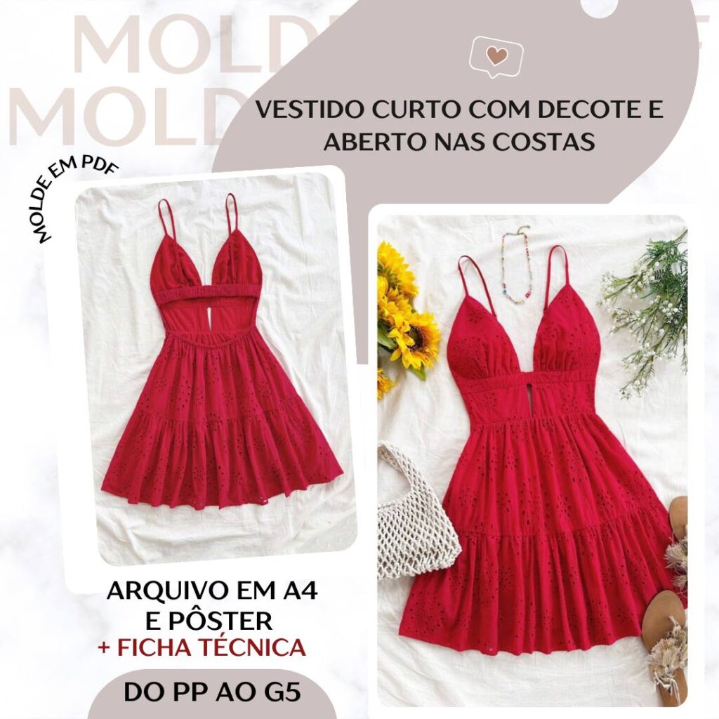 Vestido Curto com Decote e Aberto nas Costas - Molde em PDF [PP ao G5]