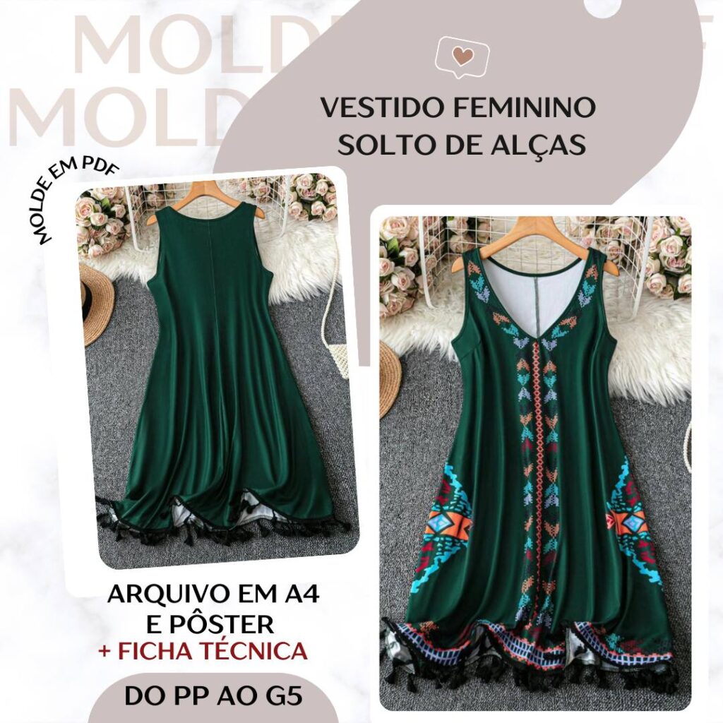 Vestido Feminino Solto de Alças - Molde em PDF [PP ao G5]
