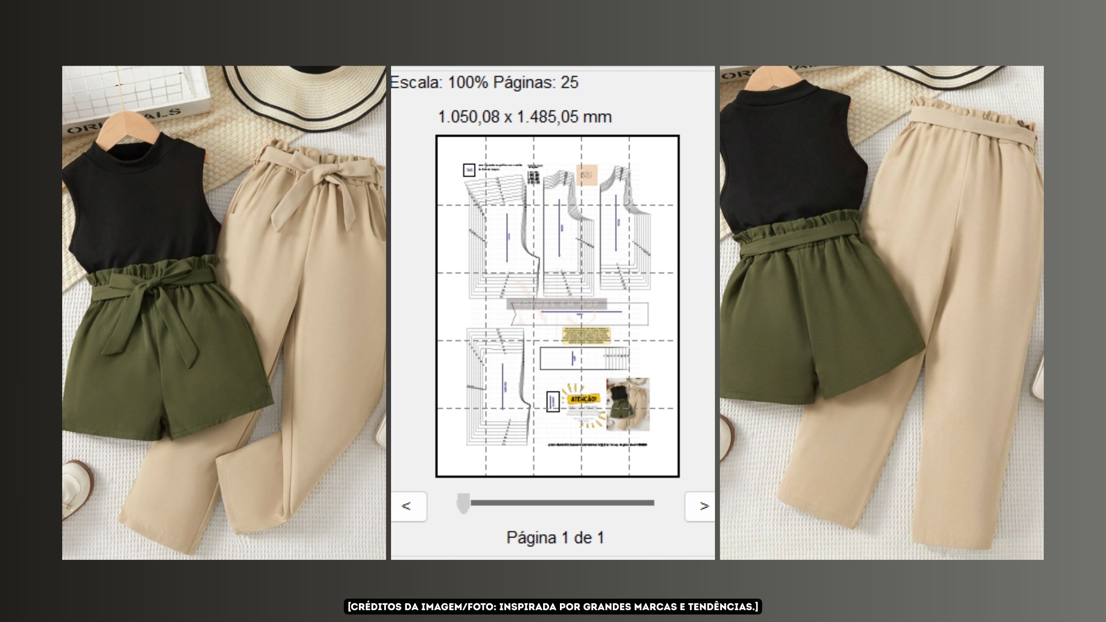 Além disso, o corte da calça e do short valoriza o caimento com tecidos leves ou médios. Já o top é fácil de montar e aceita tecidos variados.