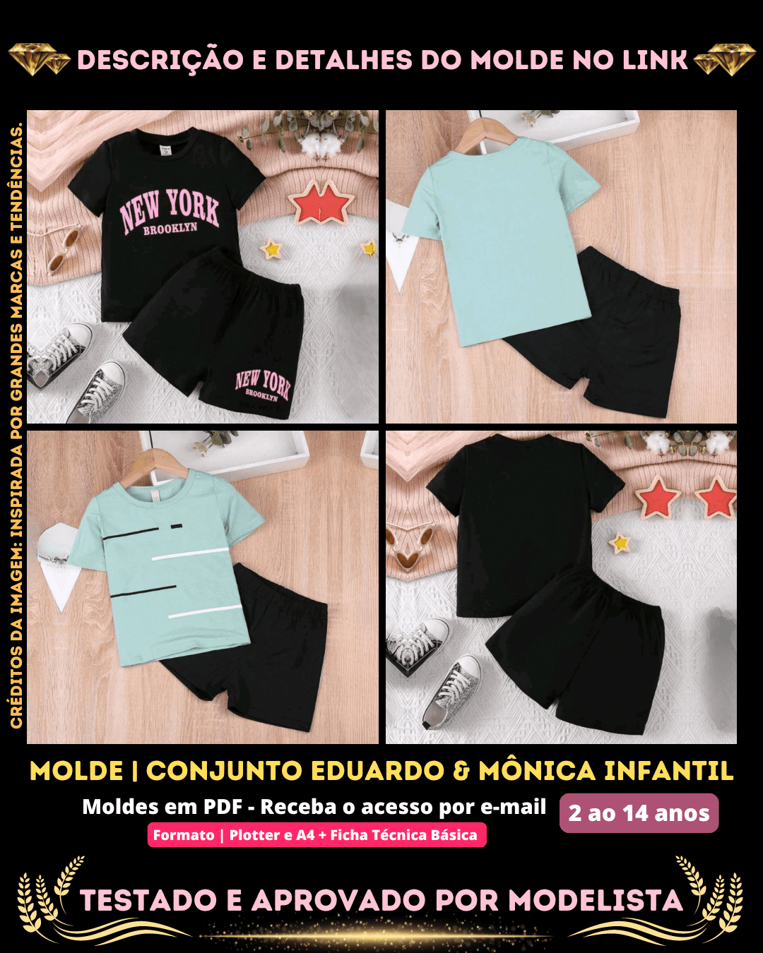 Moldes em PDF Conjuntos com Shorts Infantil | RN ao 14 anos